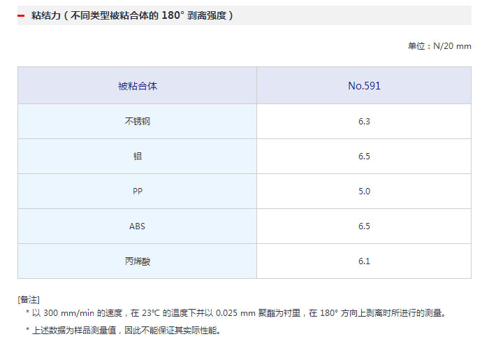 固定板/零部件的雙面膠帶。 No.591 是一款粘合劑較薄的薄型轉移膠帶,適用于固定銘牌/元件。
